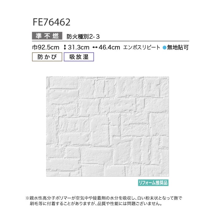 壁紙 のり無し サンゲツ FINE 吸放湿度壁紙 巾92.5cm FE76462