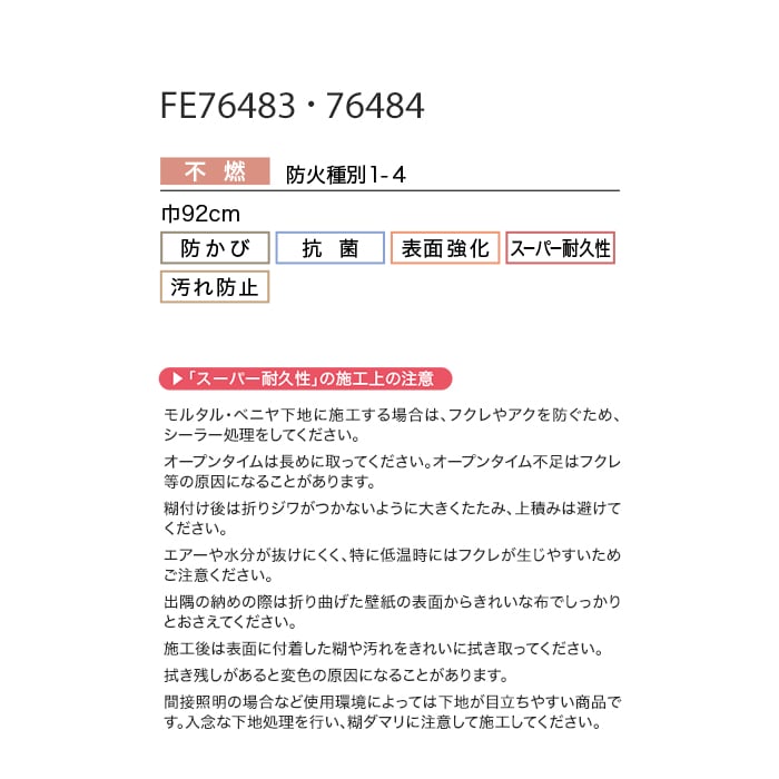 ○スーパー耐久性:フィルム汚れ防止壁紙に、さらに表面強度をプラスした壁紙です。