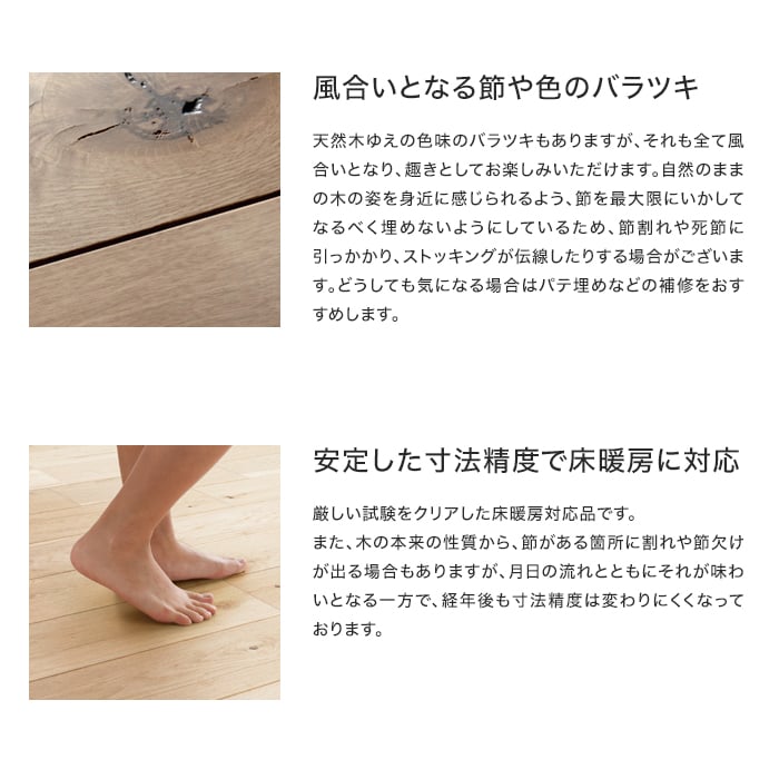 木材の性質上、気温や湿度などの環境により、反りや膨張などが発生する場合がございます。