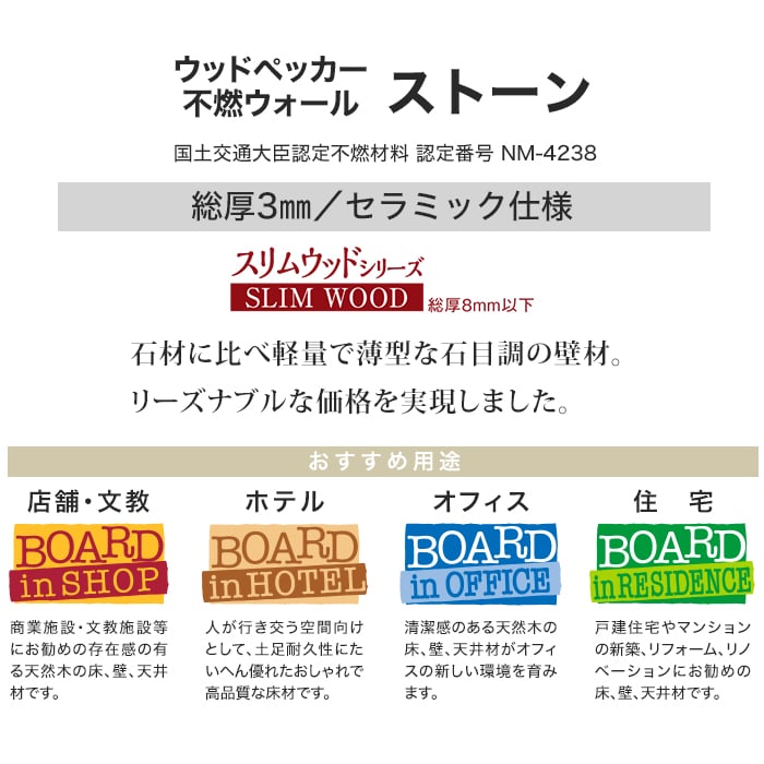 ウッドパネル ボード ウッドペッカー 不燃ウォール ストーン スレート 2400mm