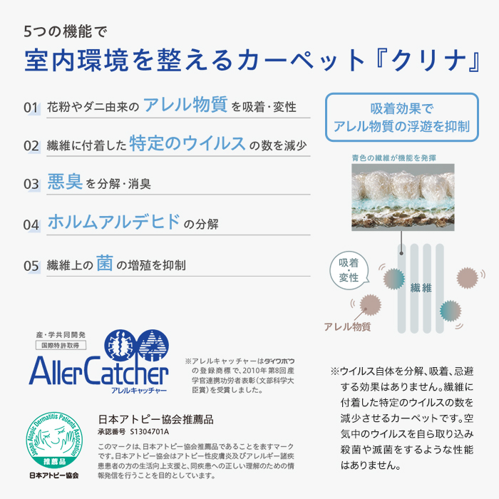 ○アレルキャッチャー:アレル物質の吸着や、抗ウイルス作用がある商品です。