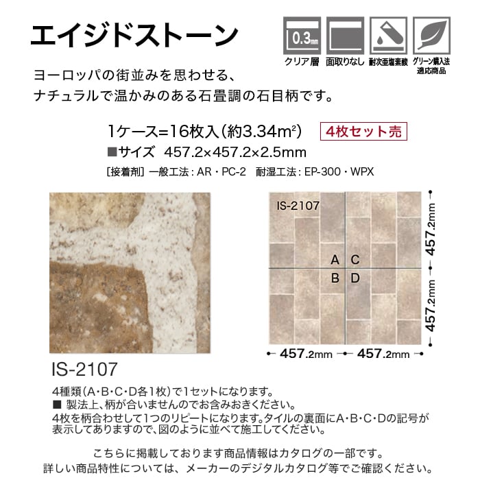 フロアタイル 石目調 サンゲツ エイジドストーン 457.2×457.2×2.5mm 4枚セット