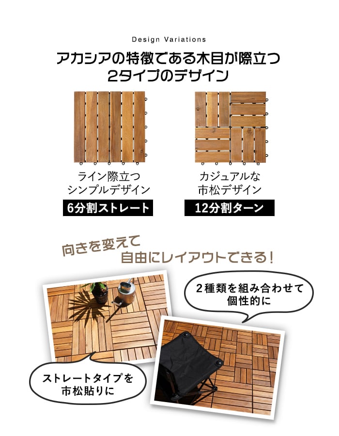 ベランダ・バルコニーDIYに天然木アカシア製のデッキパネル