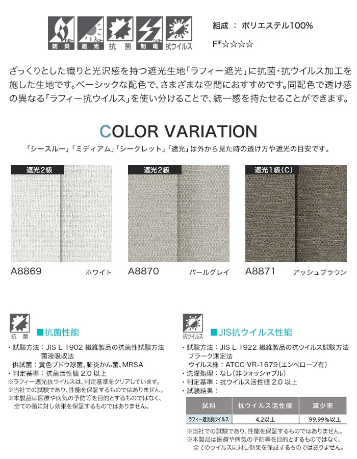 〇シリーズ名:ラフィー遮光 抗ウイルス