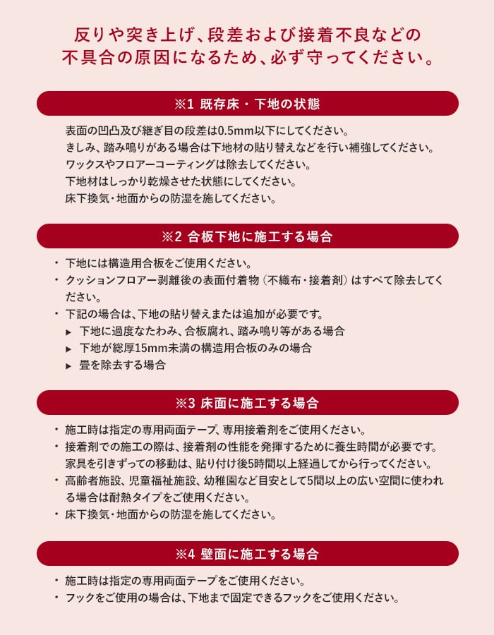 開梱して1週間程度施工環境に馴染ませてから施工されることを推奨いたします。