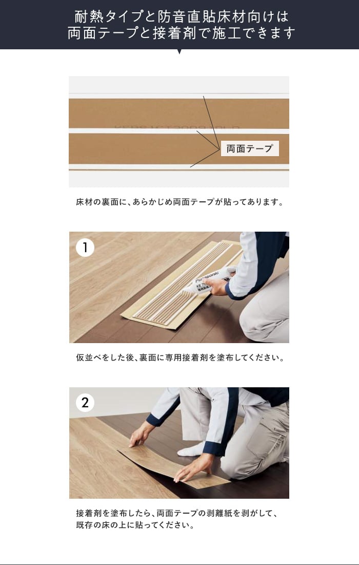 1.5mmの薄型タイプなので、既存の床の上に上貼りしても建具と干渉しにくいのが特長!