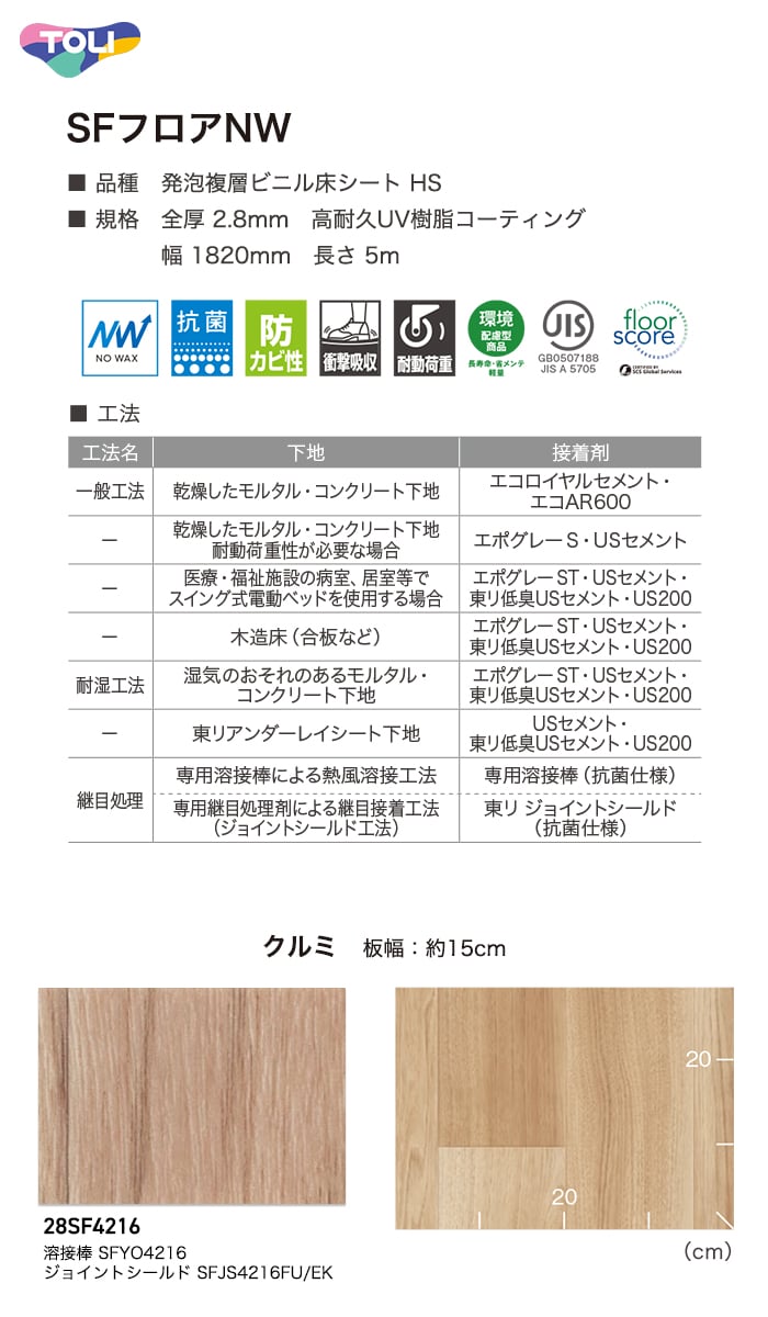 長尺シート 東リ SFフロアNW クルミ 2.8mm厚