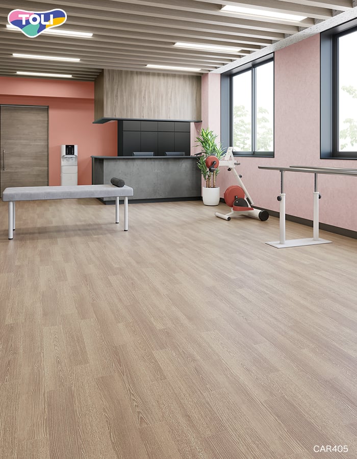 床材単体でG値100(980m/s2)以下を実現。衝撃吸収性に優れたノーワックス発泡ビニル床シート。