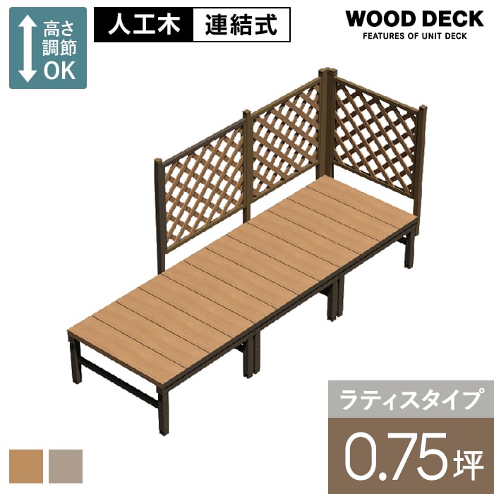 人工木ウッドデッキ ユニットデッキII ラティスフェンス付 0.75坪 (2734×934mm)