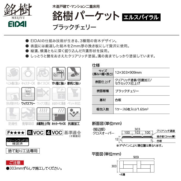エイダイ 銘樹 パーケット エルスパイラル ブラックチェリー 床暖可 0.5坪