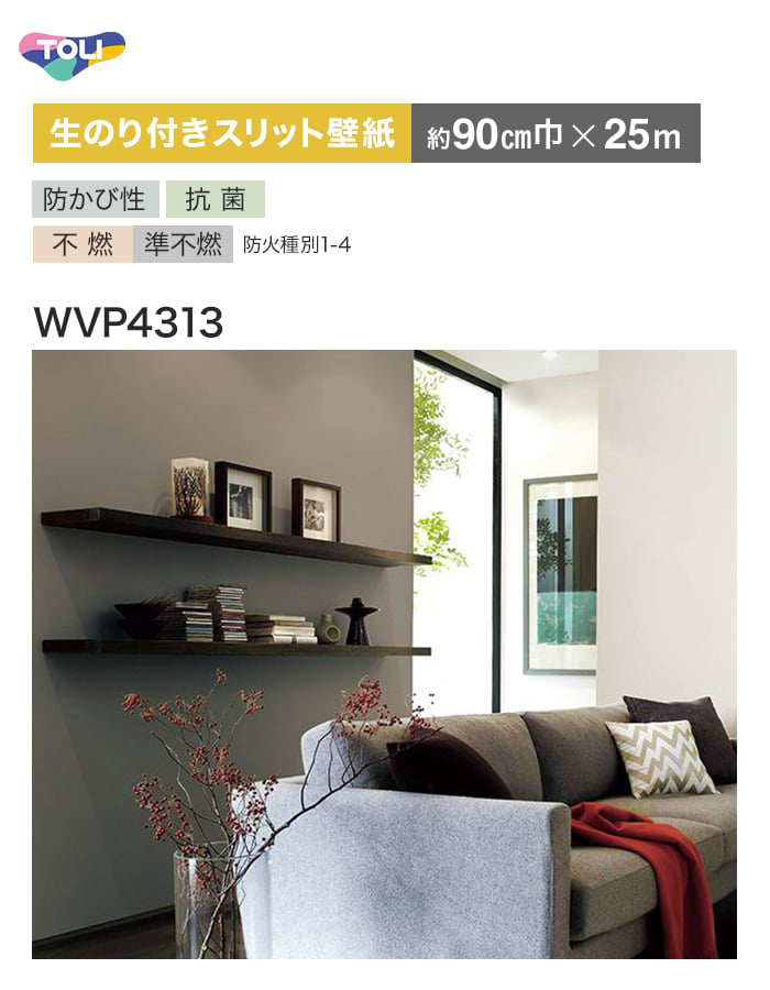 【数量限定】アウトレットパック 25m (生のり付きスリット壁紙のみ) 東リ POWER1000 抗菌ベーシック WVP4313 (約90cm巾)