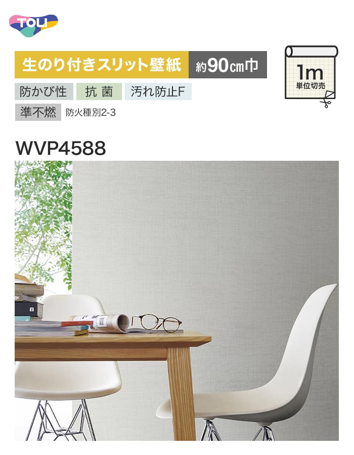 【数量限定】生のり付きスリット壁紙 切り売り 東リ POWER1000 フィルム抗菌汚れ防止「ファンクレア」 WVP4588 アウトレット特価! (約90cm巾)