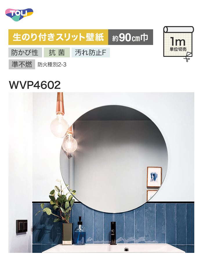 【数量限定】生のり付きスリット壁紙 切り売り 東リ POWER1000 フィルム抗菌汚れ防止「ファンクレア」 WVP4602 アウトレット特価! (約90cm巾)