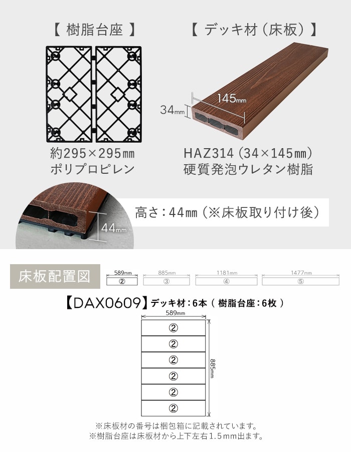 【ウッドデッキ 置くだけ】 MINO 彩木スマートデッキDAX W600×D900×H44mm DAX0609
