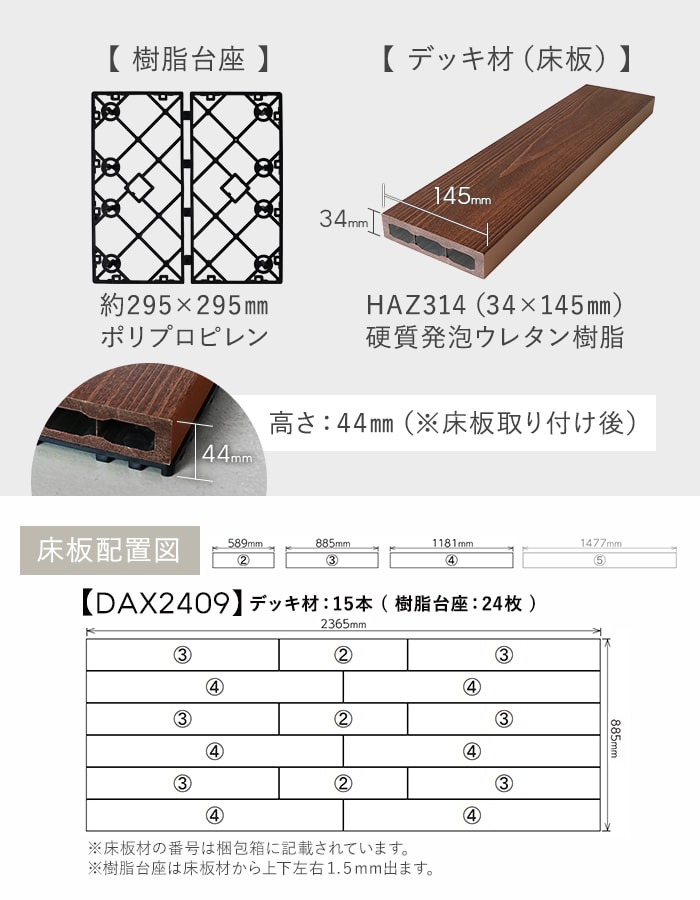 【ウッドデッキ 置くだけ】 MINO 彩木スマートデッキDAX W2400×D900×H44mm DAX2409