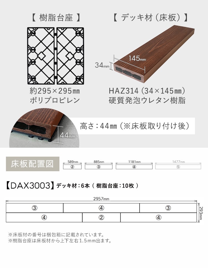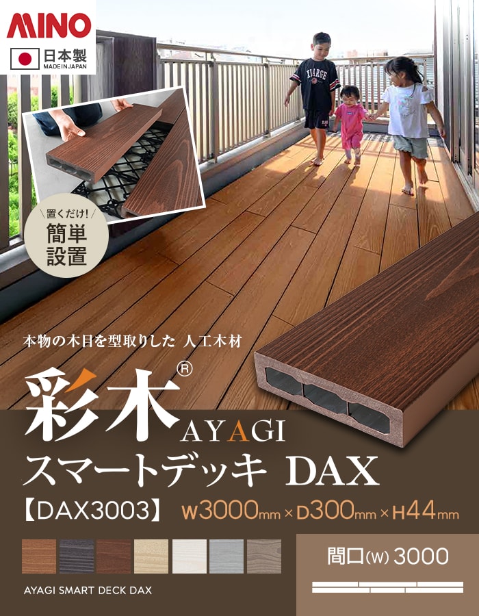 【ウッドデッキ 置くだけ】 MINO 彩木スマートデッキDAX W3000×D300×H44mm DAX3003