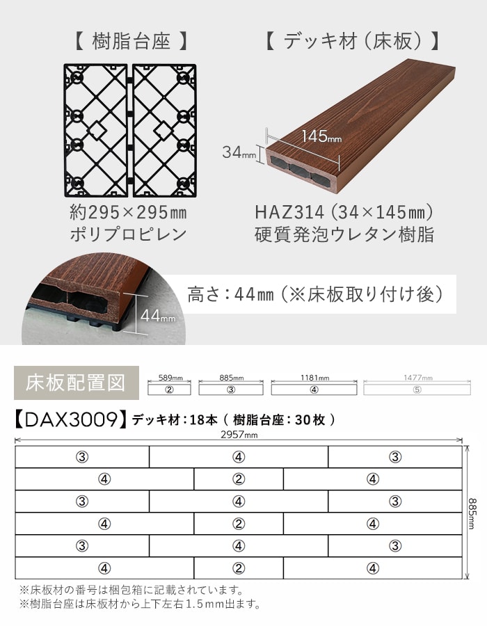 【ウッドデッキ 置くだけ】 MINO 彩木スマートデッキDAX W3000×D900×H44mm DAX3009