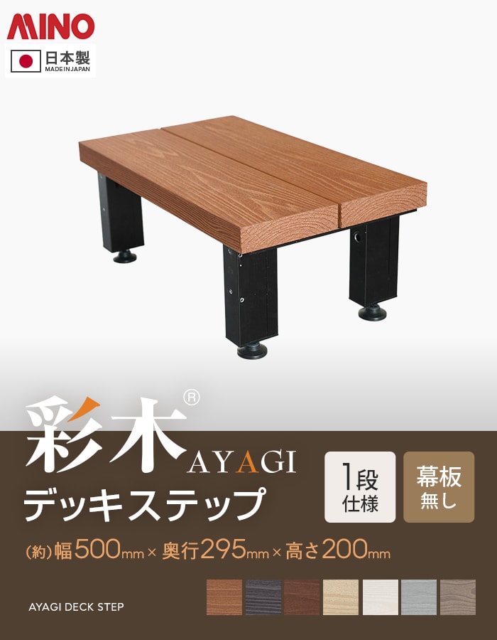 MINO 彩木 デッキステップ 【1段】 幕板なし 幅500×高さ200mm