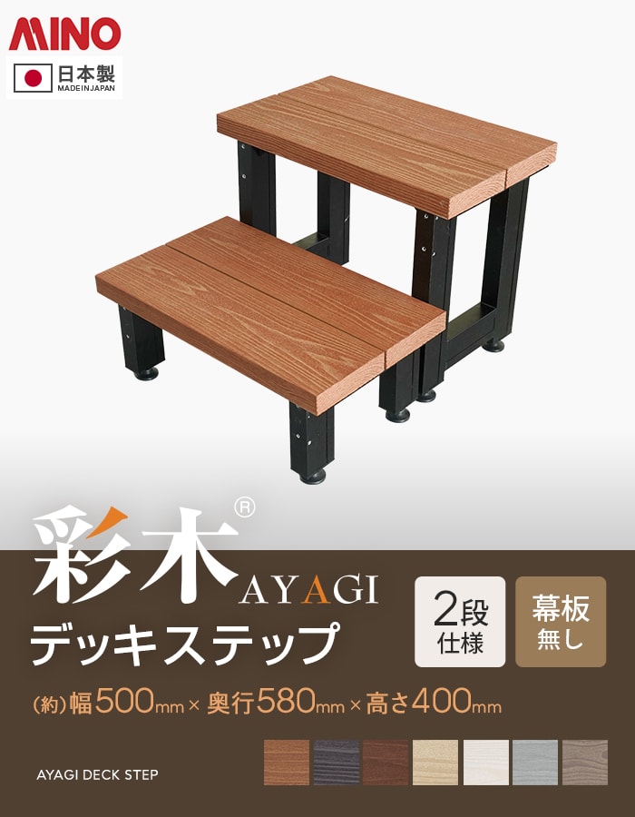 MINO 彩木 デッキステップ 【2段】 幕板なし 幅500×高さ400mm
