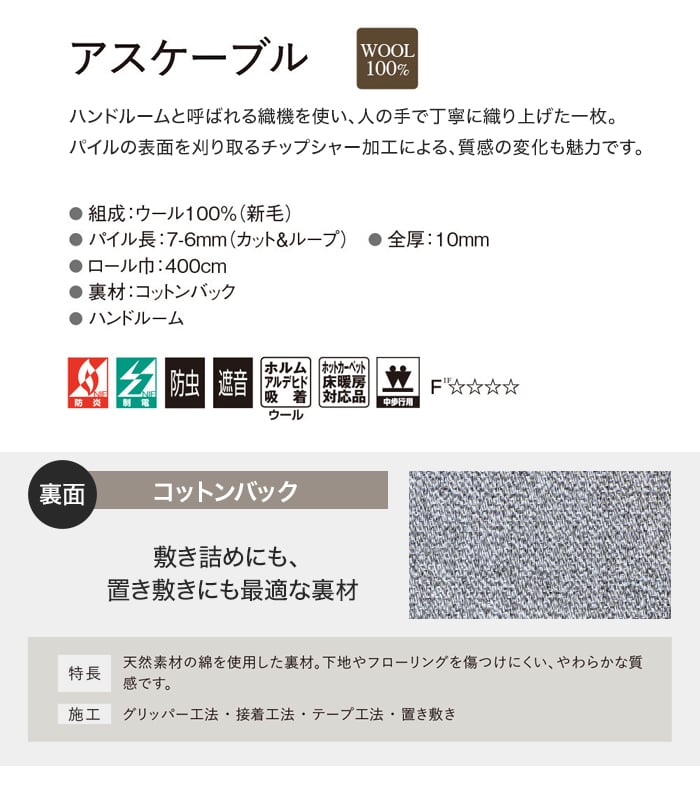 オーダーカーペット アスワン アスケーブル 全厚10mm (防虫 ウール)