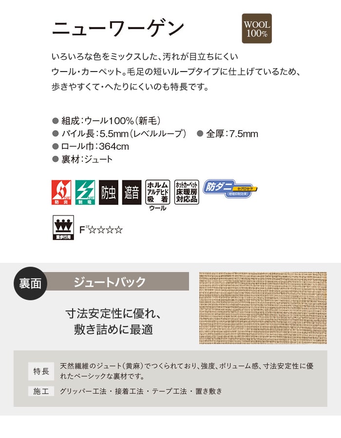 オーダーカーペット アスワン ニューワーゲン 全厚7.5mm (防虫 防ダニ ウール)