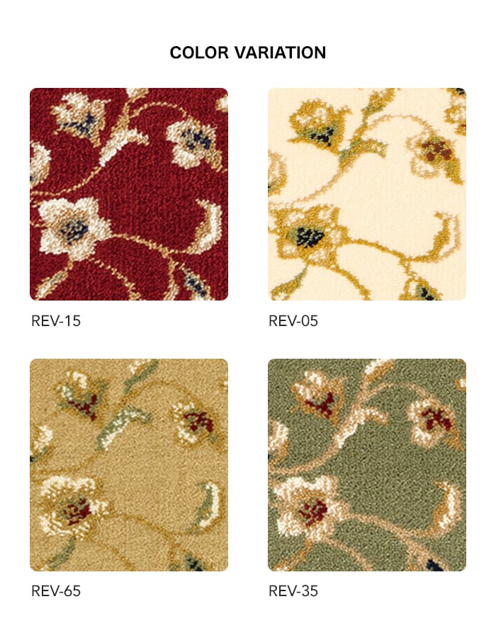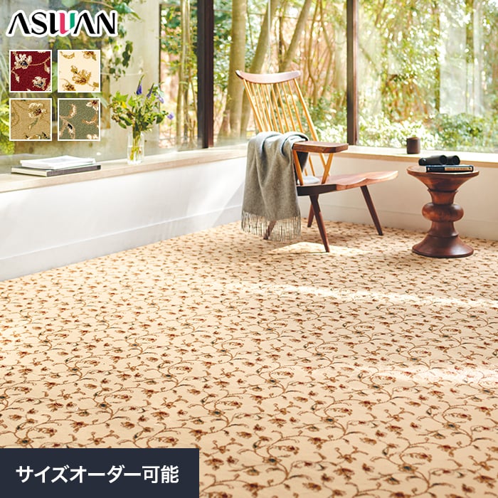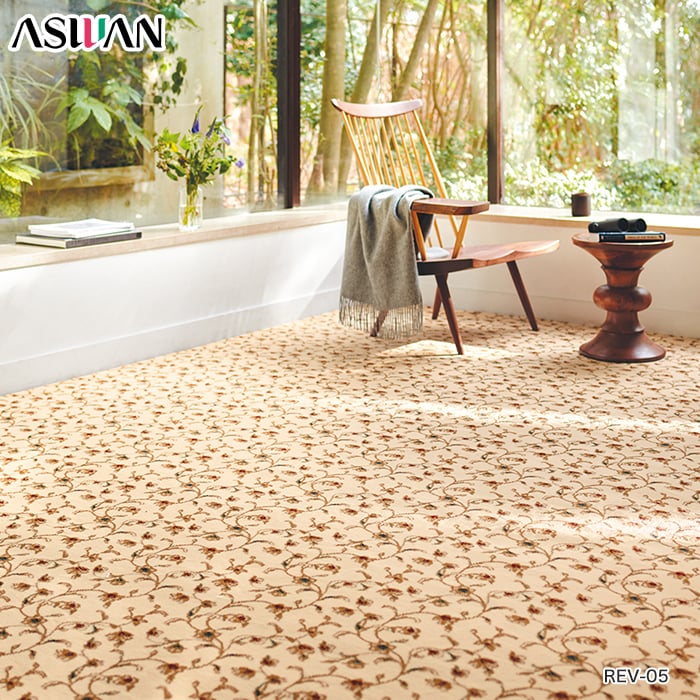 唐草と花を組み合わせて、綿密に織り上げたカーペットです。しっかりとした踏み心地のため、ホテルの一室のような上質な空間ができあがります。