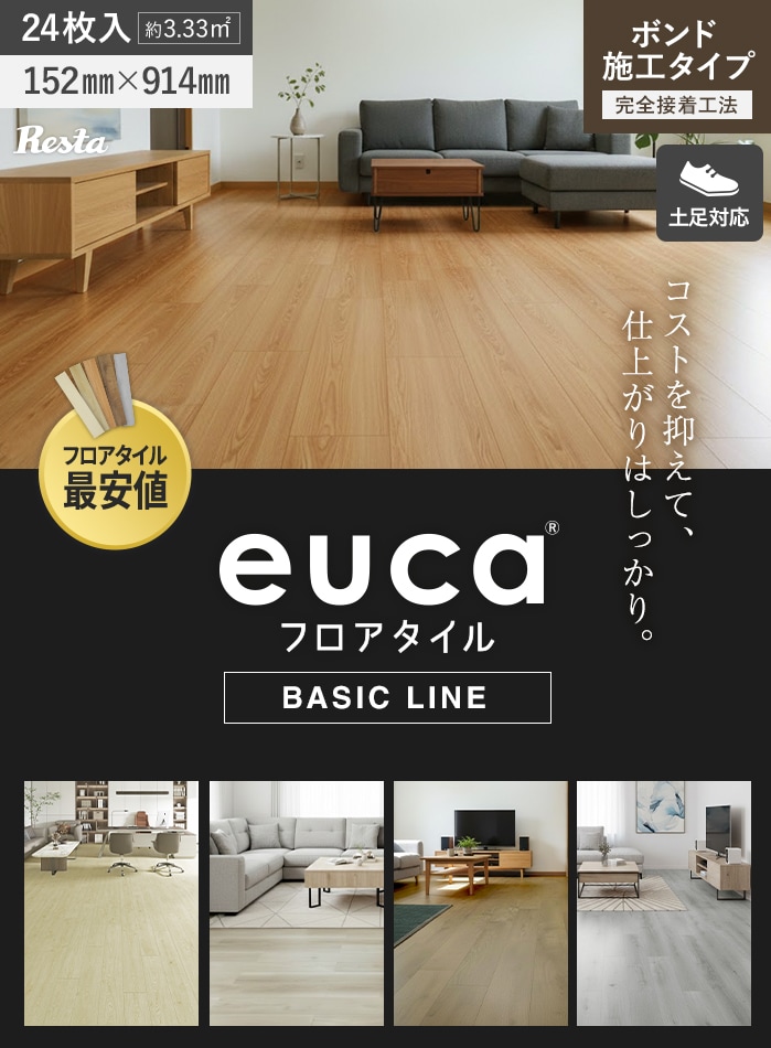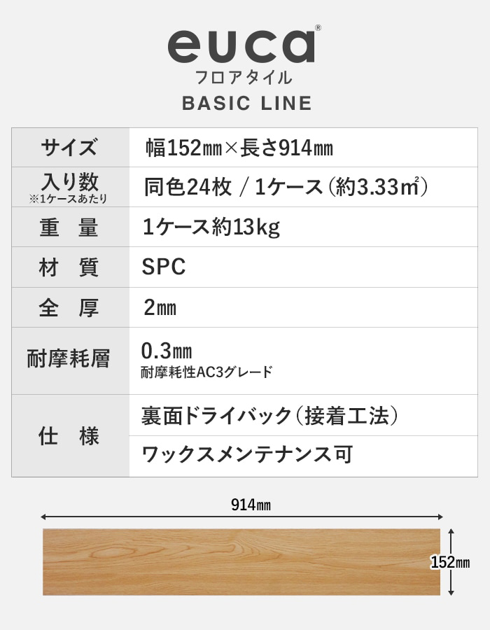 フロアタイル euca ベーシックライン 2.0mm厚 152mm×914mm 24枚入り 約3.33平米