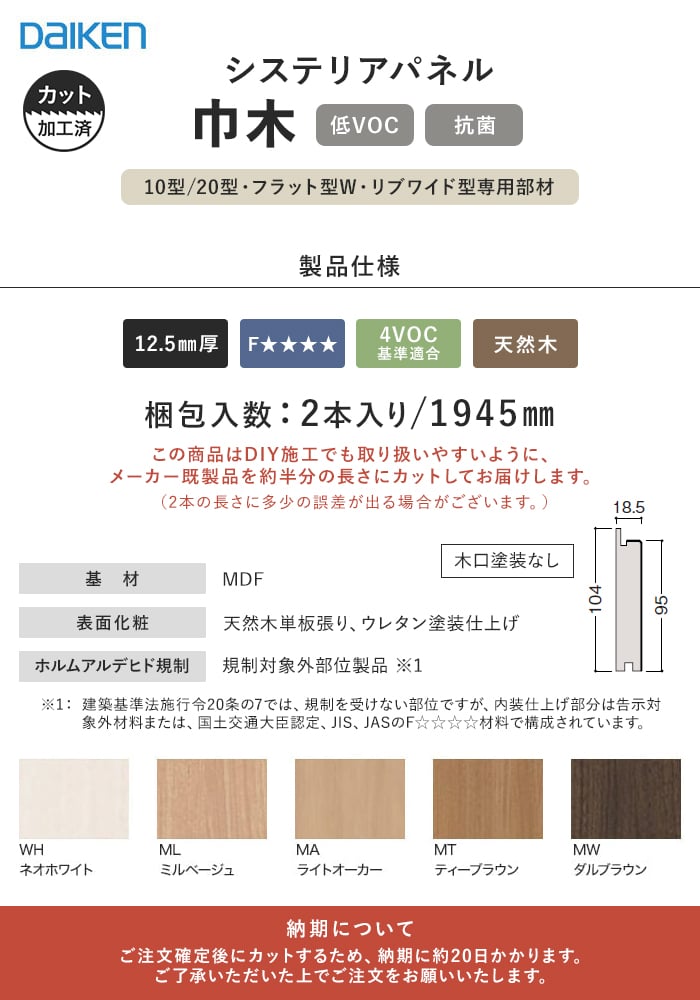 腰壁 ダイケン 腰壁パネル用 巾木(1945mm×2本)