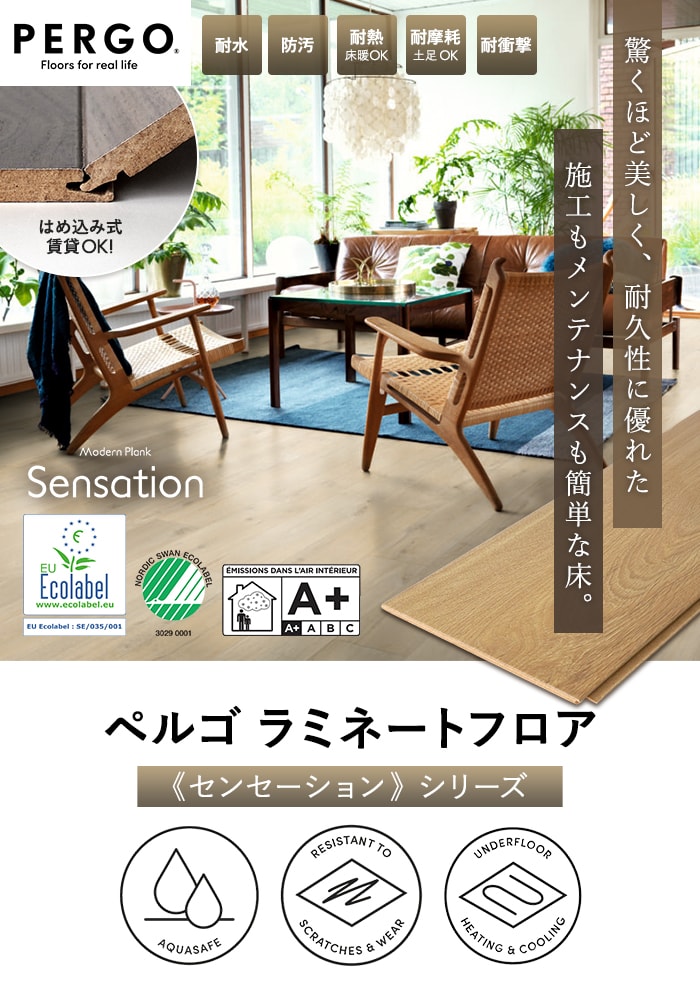 施工もメンテナンスも簡単な床。はめ込み式フローリング ペルゴのラミネートフロア。