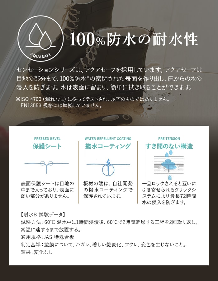 さらに、センセーションシリーズは、優れた防水性を実現する特許技術AquaSafe(アクアセーフ)を採用。