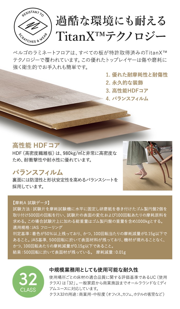 PERGOラミネートフロアは、特許取得済みのTitanXを搭載!