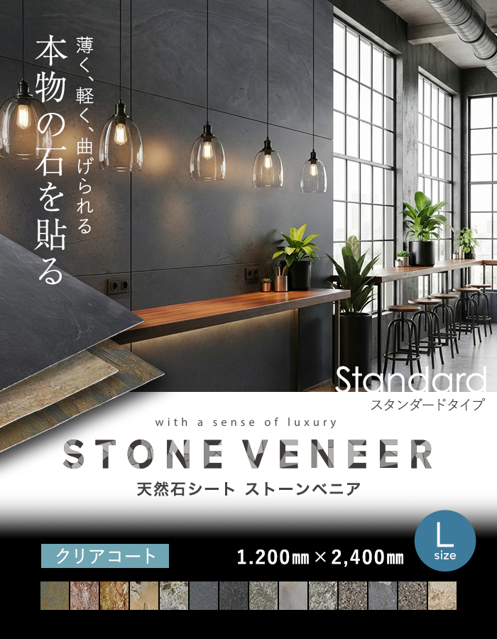 【天然石シート】 ストーンベニア スタンダードタイプ (粘板岩) 1200×2400mm クリアコート仕上げ