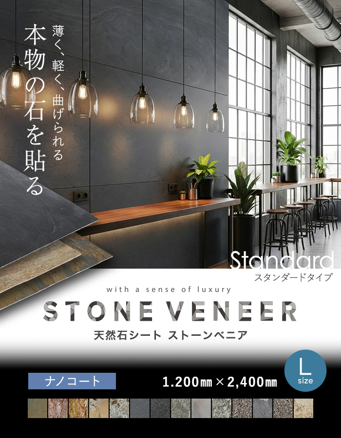 【天然石シート】 ストーンベニア スタンダードタイプ (粘板岩) 1200×2400mm ナノコート仕上げ