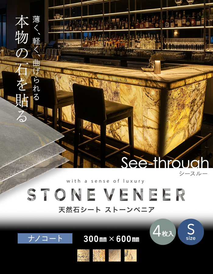 【天然石シート】 ストーンベニア シースルータイプ (粘板岩) 300×600mm 4枚セット ナノコート仕上げ