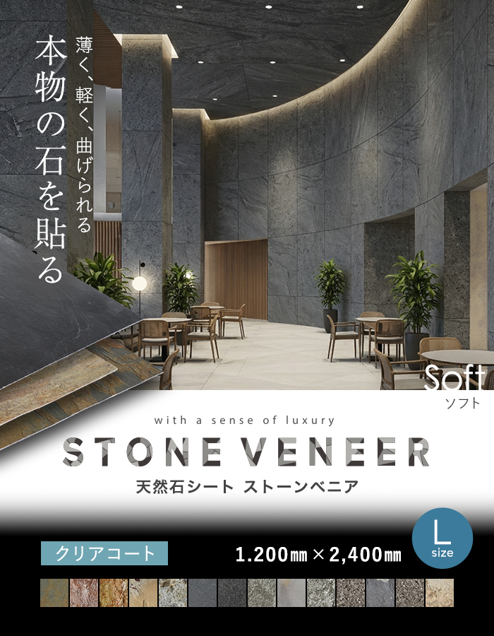 ストーンベニアは、天然の石材を特殊な技術で薄く剥がした新しくて地球環境に優しい天然石シートです。