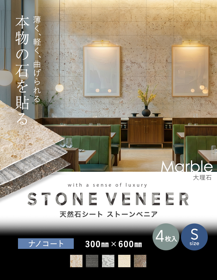 【天然石シート】 ストーンベニア 大理石タイプ 300×600mm 4枚セット ナノコート仕上げ