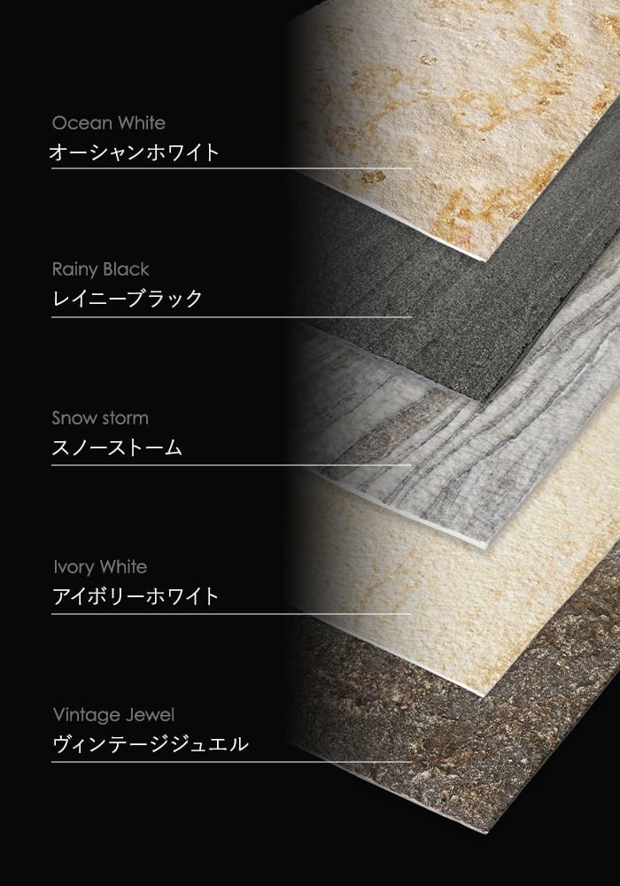 大理石を原石とするシートです。色柄と質感に特徴があり、複雑で独特の風合いが魅力のタイプです。