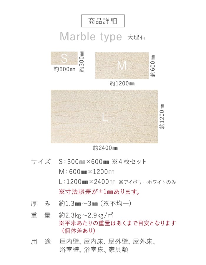 ■用途:屋内壁、屋内床、屋外壁、屋外床、浴室壁、浴室床、家具類