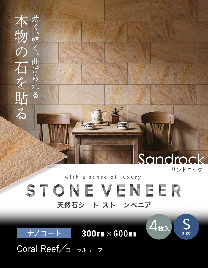 【天然石シート】 ストーンベニア サンドロックタイプ (砂岩) 300×600mm 4枚セット ナノコート仕上げ