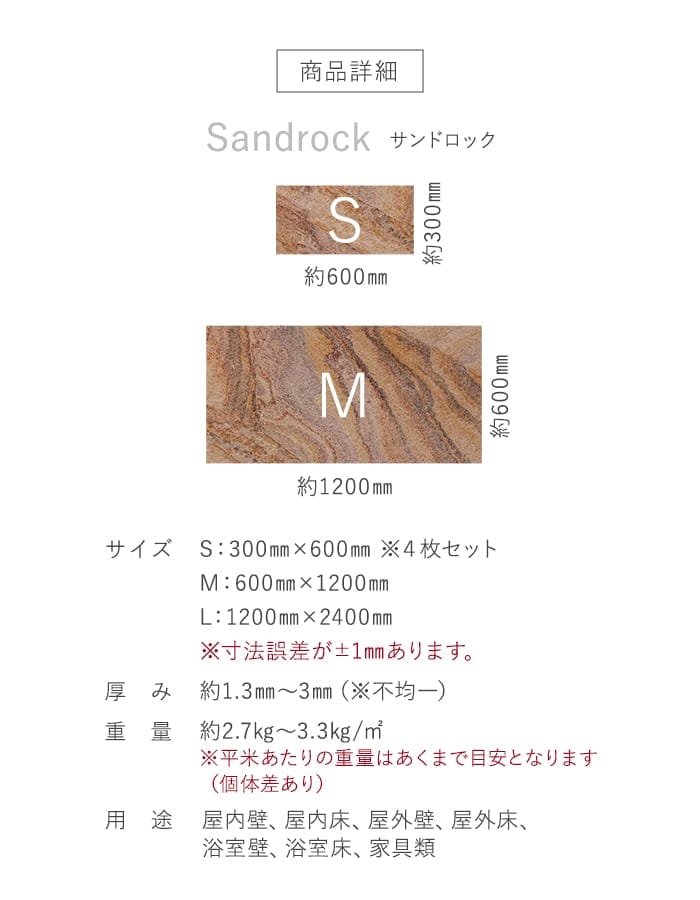 【天然石シート】 ストーンベニア サンドロックタイプ (砂岩) 600×1200mm ナノコート仕上げ