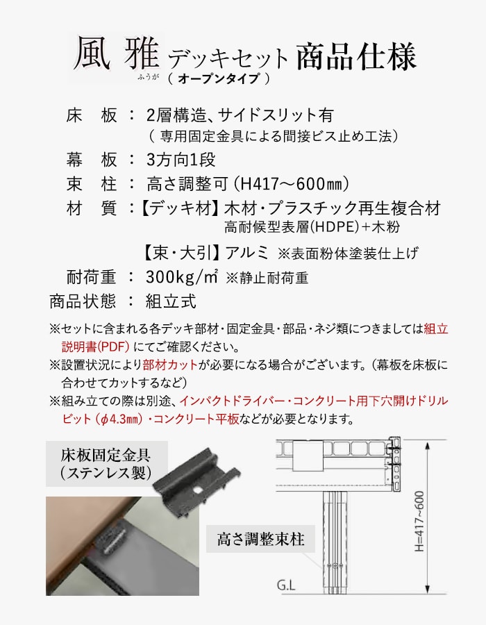 風雅 デッキセット 1.5間×9尺 オープンタイプ