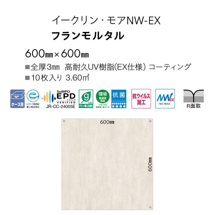 フロアタイル 東リ イークリン・モアNW-EX フランモルタル 600×600×3mm 10枚入
