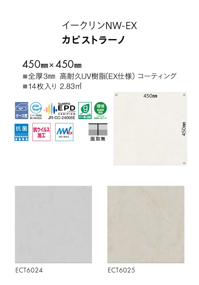 フロアタイル 東リ イークリンNW-EX カピストラーノ 450×450×3mm 14枚入