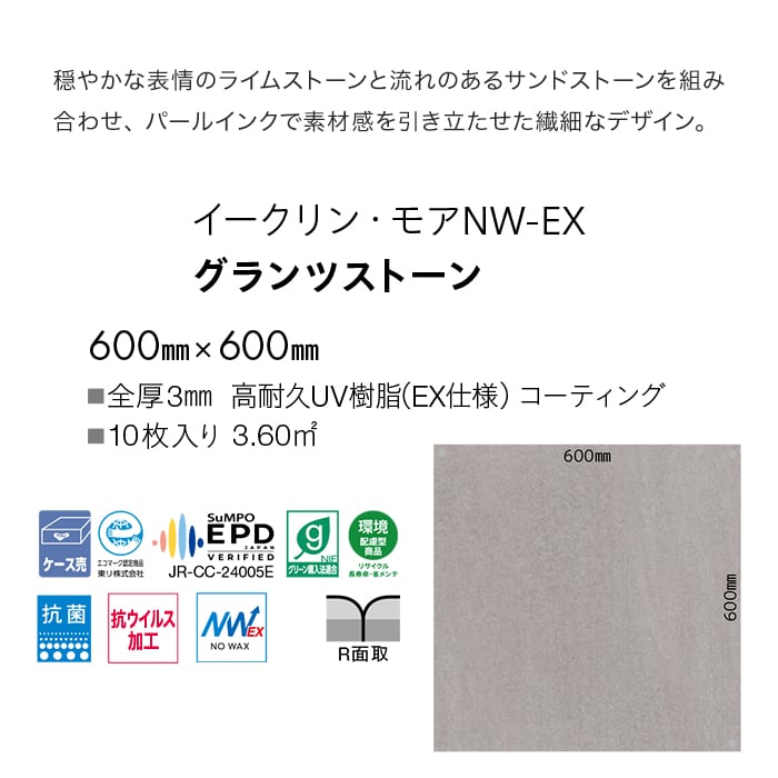 フロアタイル 東リ イークリン・モアNW-EX グランツストーン 600×600×3mm 10枚入