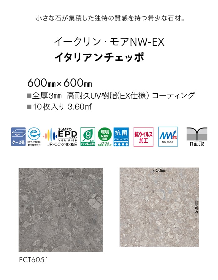 フロアタイル 東リ イークリン・モアNW-EX イタリアンチェッポ 600×600×3mm 10枚入
