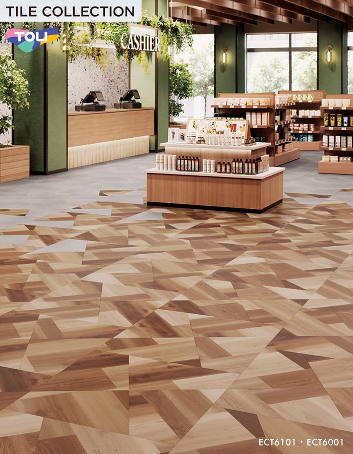 ワックスを凌ぐ防汚性を実現し、 美観維持が簡易な高意匠タイル。