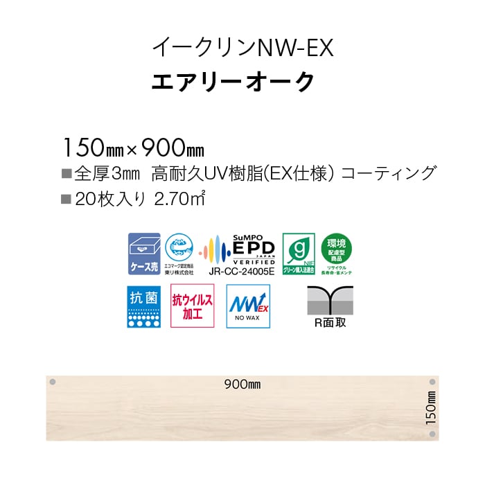 フロアタイル 東リ イークリンNW-EX エアリーオーク 150×900×3mm 20枚入