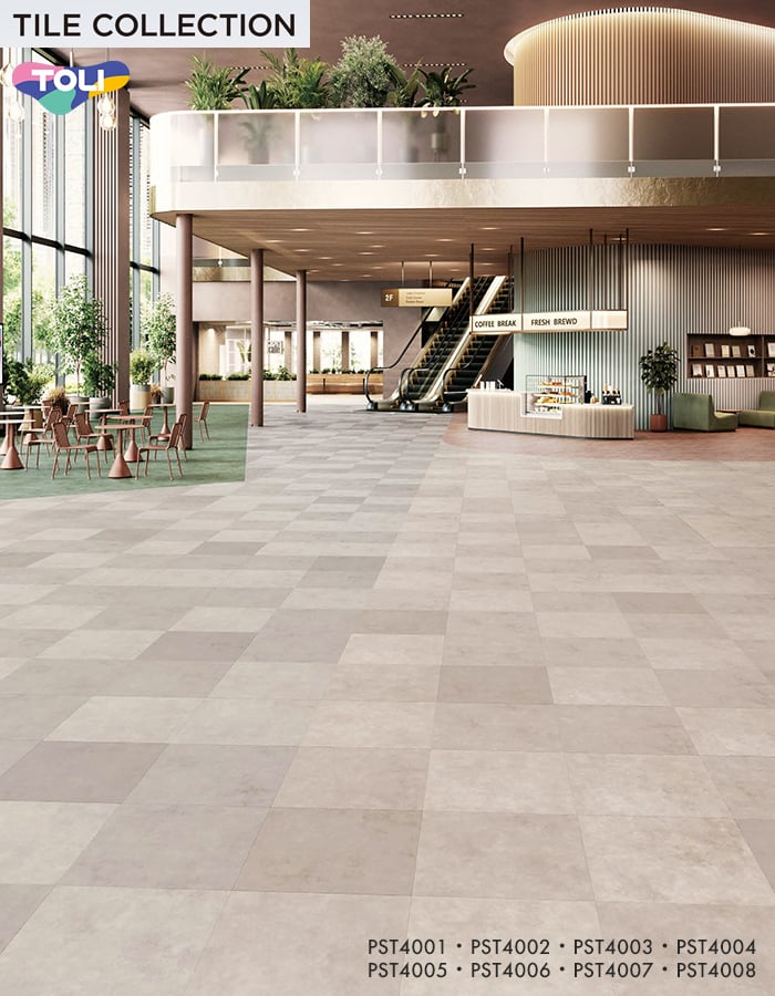 色柄・サイズともに豊富な石目柄プリントタイル。エコマーク認定商品。
