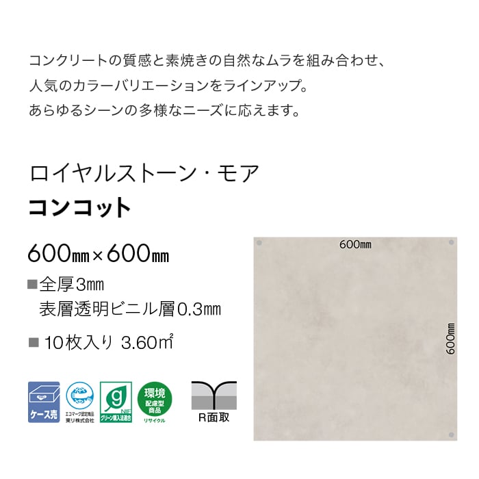 フロアタイル 東リ ロイヤルストーン・モア コンコット 600×600×3mm 10枚入