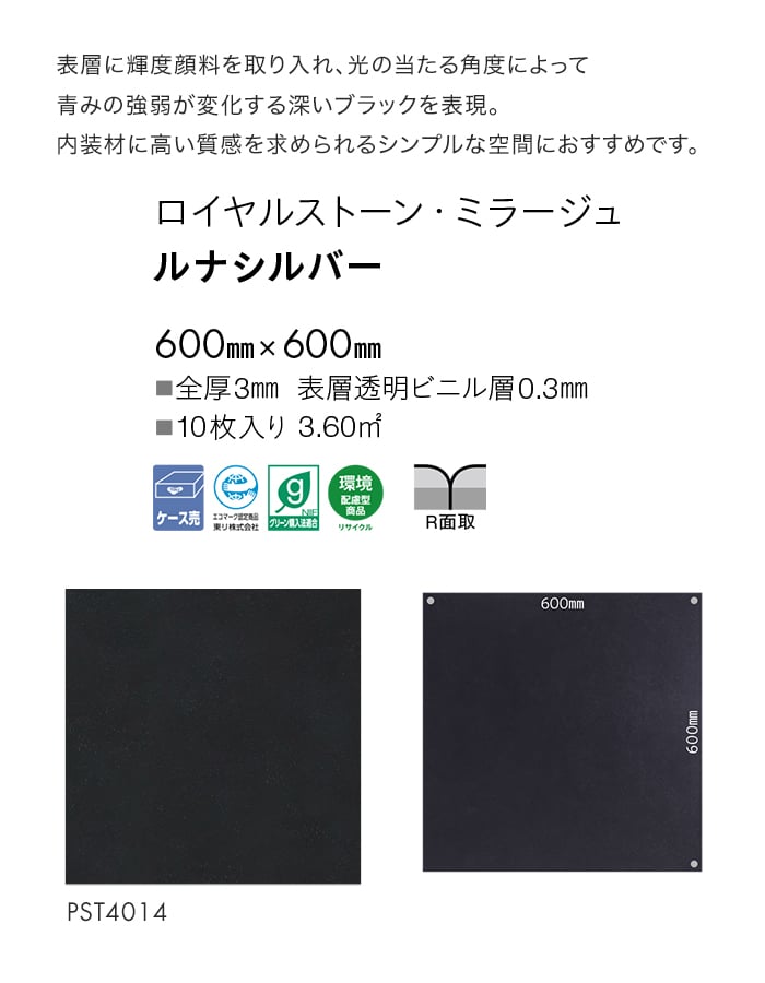 フロアタイル 東リ ロイヤルストーン・ミラージュ PST4014 600×600×3mm 10枚入
